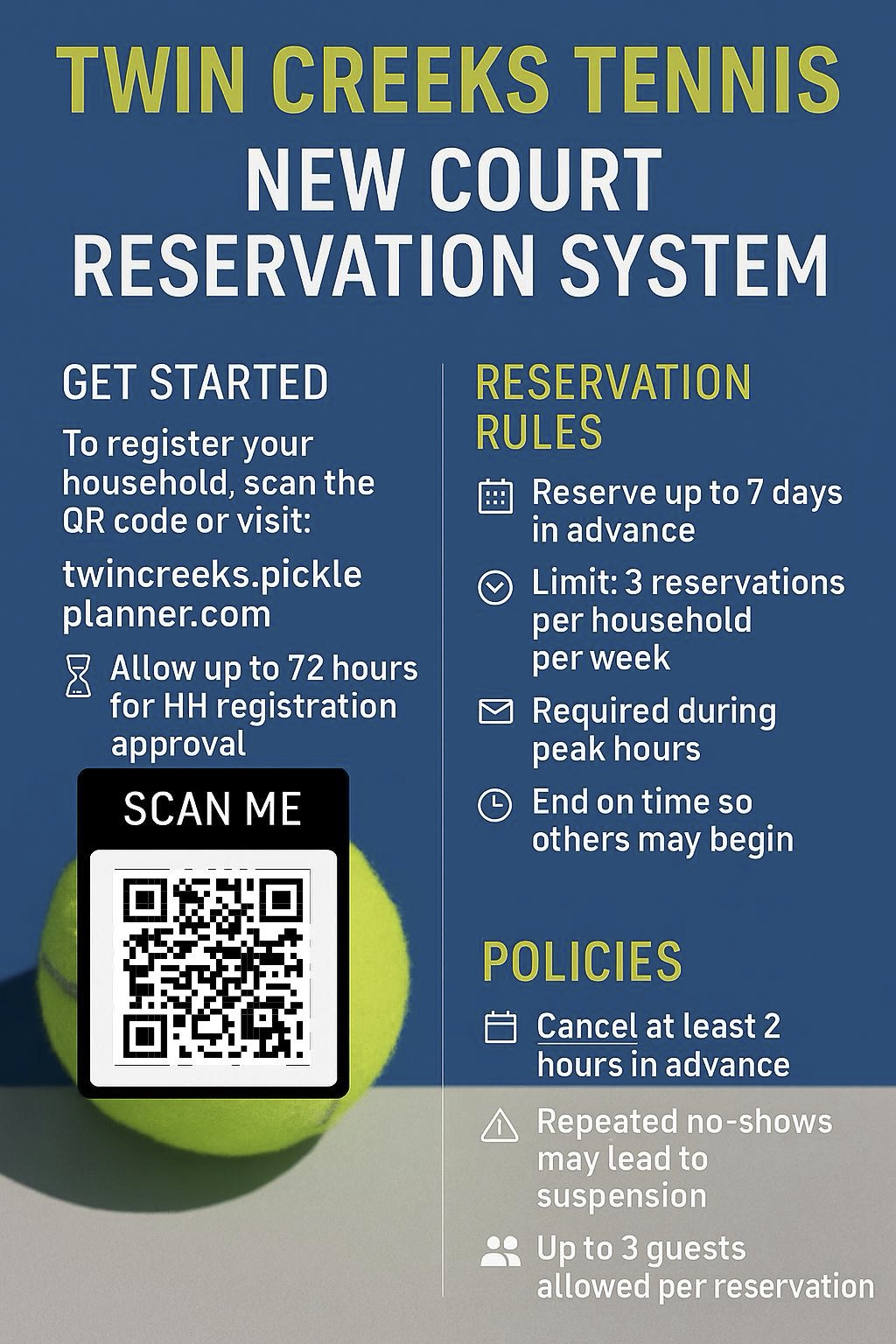 PoolTC1 & TC2 Pools open in May and close in September. Watch for communication or the Association Calendar for specific dates.Entrance to the pools/recreational facilities requires a Resident Access Card. Forms to complete to receive your Access Card may be obtained at the Information Center at 300 Twin Creeks Drive. Residents are required to have their Twin Creeks Access Card with them at all times. Periodic checks to verify membership will be conducted. Households are allowed up to two (2) Access Cards. 1st Access Card - Complimentary 2nd Access Card - $8.00 Replacement Cards - $25.00 each Swim Lessons & Swim Team Services provided by Metro Learn to Swim. Visit TCSwim for more information. If you have any questions, please contact Morgan Peele at mpeele@MetroLTS.com. Tennis |